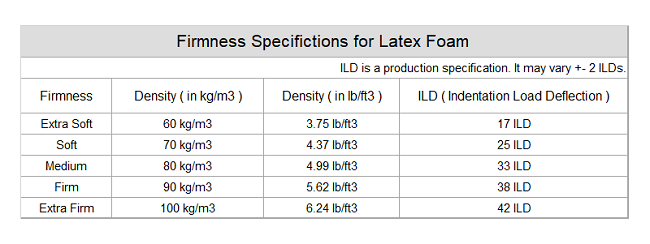 ILD is usually used to show the firmness of latex foam pads. The higher the ILD number, the firmer the latex foam is. The lower, the softer.